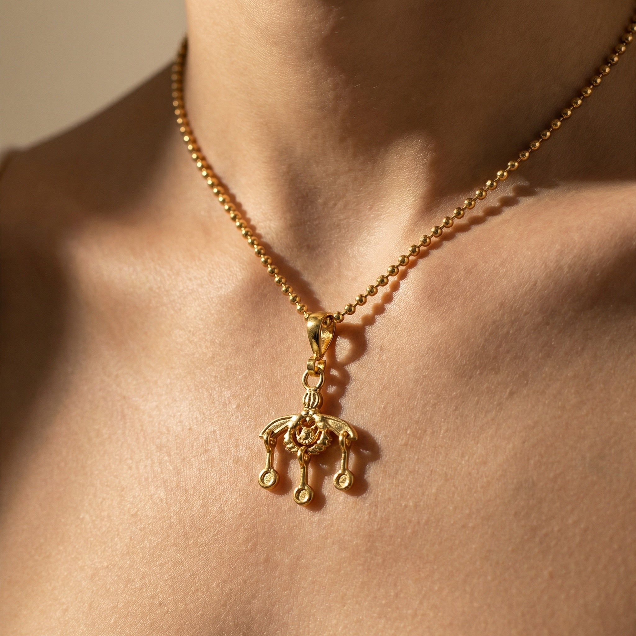 Bees pendant inspired by the Malia Pendant, a gold pendant found in a tomb in 1930 at Chrysolakkos, Malia, Crete, and dates to the Minoan civilization (1800-1650 BC).