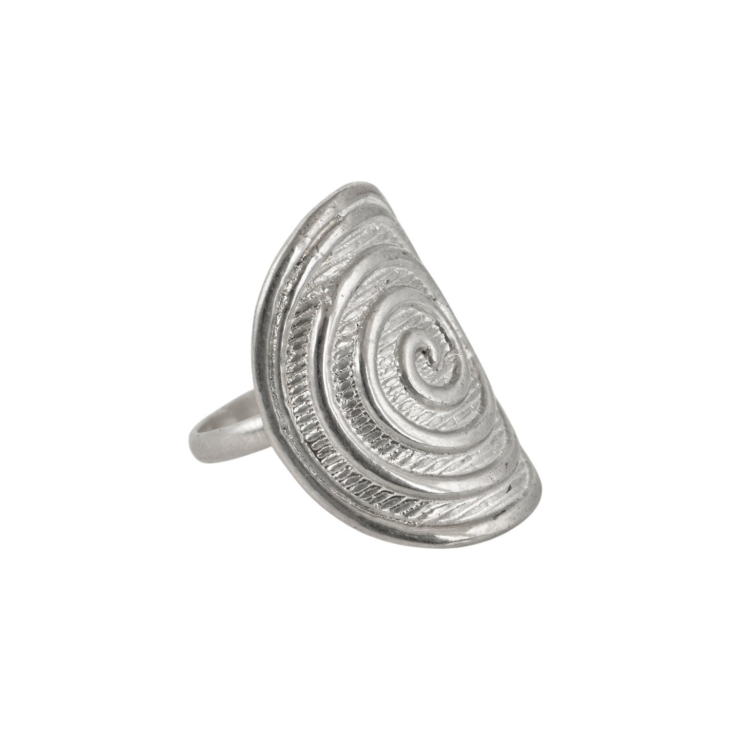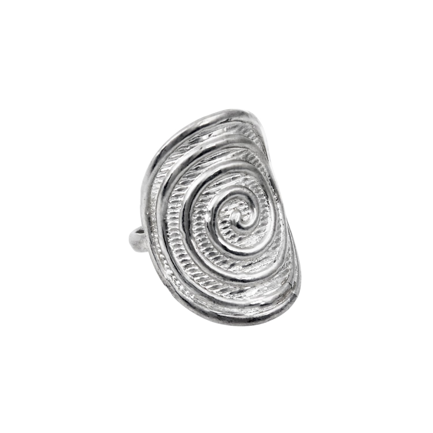 Rounded bold spiral ring in silver 925o. The spiral has been a complex and powerful symbol since Ancient times. It symbolized vitality, movement and energy. It existed in myths, religious beliefs and legends.