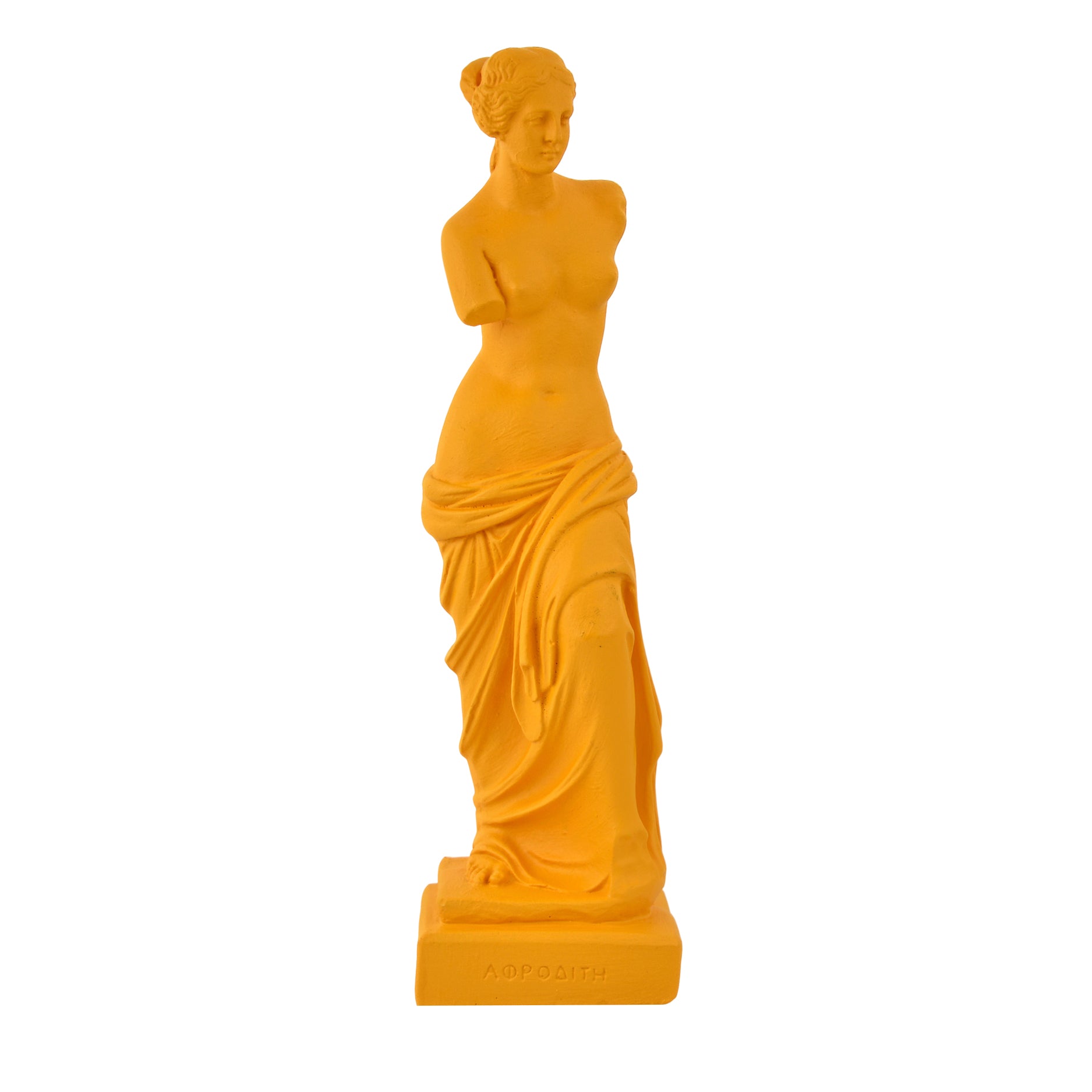 Χειροποίητο χρωματιστό αντίγραφο της Αφροδίτης της Μήλου. Βρέθηκε στην Μήλο ακρωτηριασμένη και εικάζεται πως η θεά με το αριστερό της χέρι κρατούσε ένα μήλο, ενώ το δεξί ακουμπούσε στο ύφασμα που είναι τυλιγμένο γύρω από τους γοφούς της, είτε ότι με τα χέρια της κρατούσε την ασπίδα του Άρη.