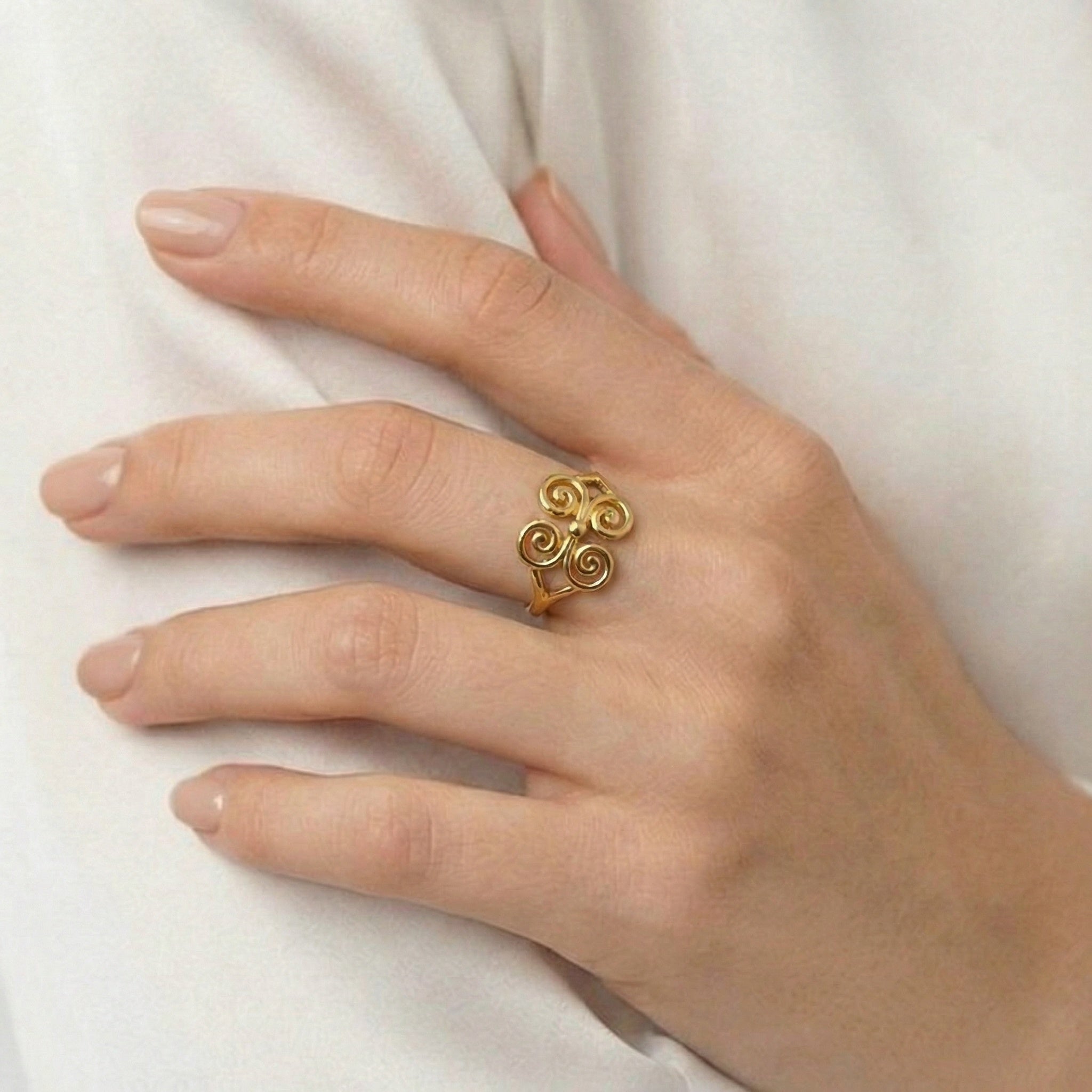 Handcrafted Silver 925° flower-shaped ring. The anthemion (palmette), a term derived from the Greek word “anthos” (flower), is a stylized flower used as a decorative theme. In Ancient Greek culture, the anthemion symbolized wealth and prosperity, and it appeared very often in burial buildings and tombstones.