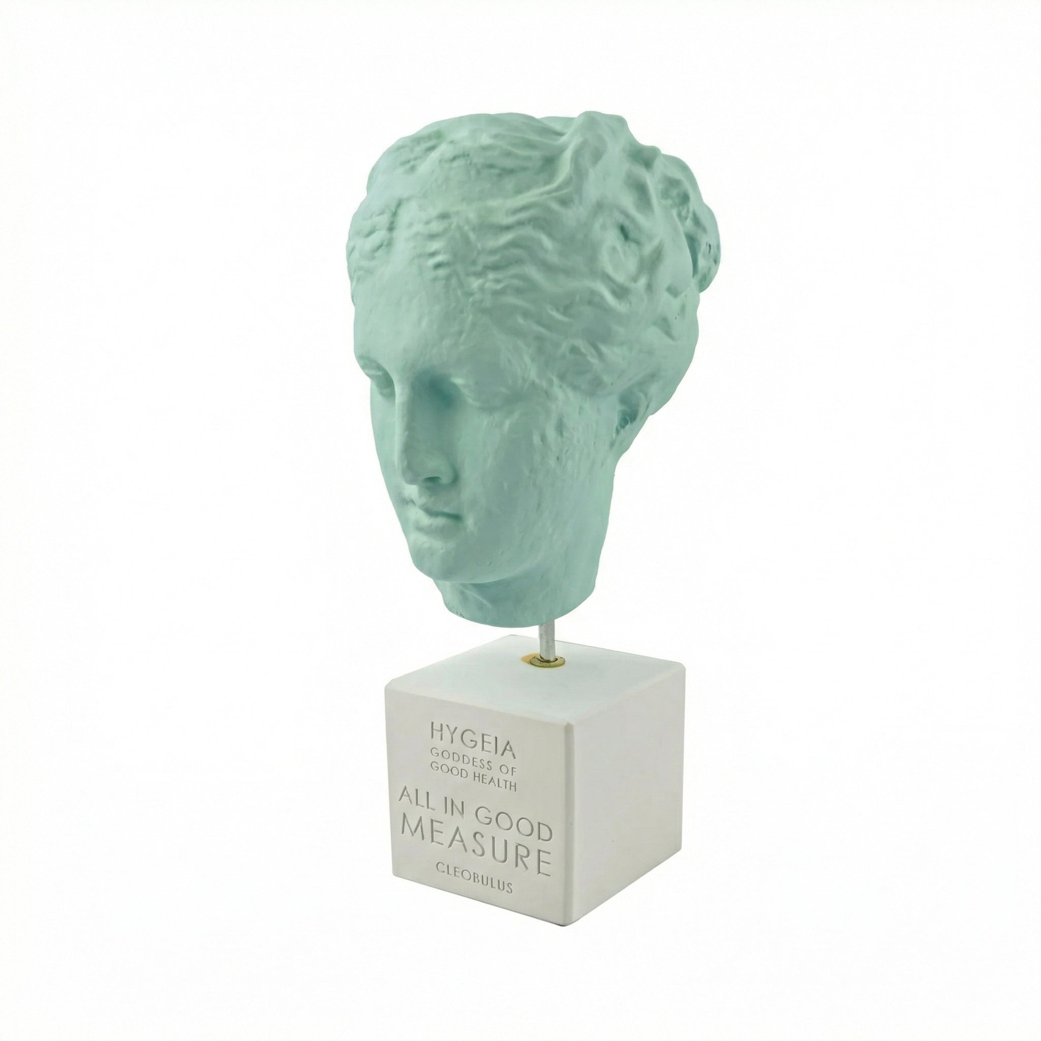 The coloured bust of Goddess Hygeia, the Goddess of health, makes an ideal present for doctors, professors and medical students. Hygeia (meaning "health" in Greek) symbolized sanitation and hygiene, and was the daughter and attendant of Asclepius, the God of Medicine.