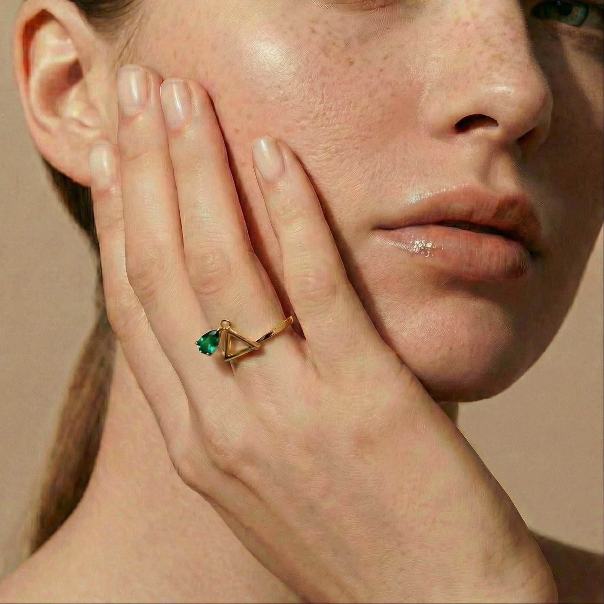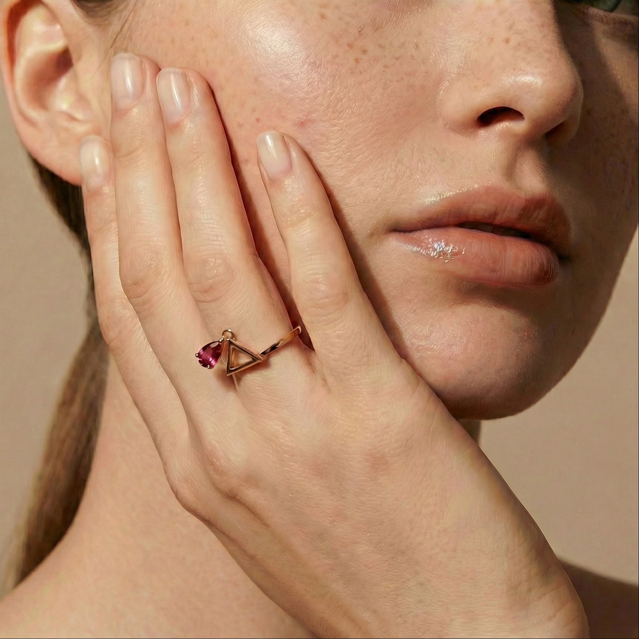 Rose Gold-Plated Silver 925° & Spinel Stone "Triangular Drop" Geometrical Ring